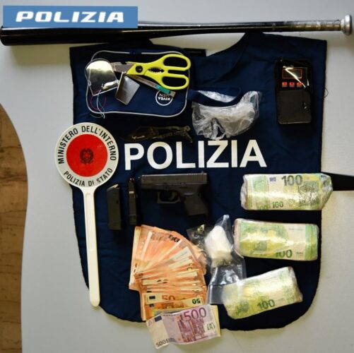 I controlli sono stati mirati nei confronti di soggetti dediti allo spaccio di stupefacenti e che si ritenevano detentori di armi non legalmente detenute e strumenti atti ad offendere e sono consistiti anche nell’esecuzione di diverse perquisizioni domiciliari, veicolari e personali. I sospetti delle forze dell’ordine si sono in effetti ritenuti fondati in quanto nel corso di una prima perquisizione presso l’abitazione di un soggetto di 44 anni, pregiudicato, veniva rinvenuta una pistola calibro 9×21 con due caricatori riforniti per un totale di 16 cartucce, un involucro contenente 55 grammi di sostanza stupefacente del tipo cocaina, nonché strumentazione per il confezionamento di dosi, una mazza da baseball, un coltello a serramanico e la somma di circa 30 mila euro in contanti. Successivi accertamenti esperiti nei confronti dell’arma da fuoco permettevano di stabilire che si trattava del provento di un furto in abitazione compiuto anni addietro in un’altra in provincia. Per tale motivo, l’uomo veniva arrestato in flagranza di reato per i delitti di detenzione ai fini di spaccio di sostanza stupefacente del tipo cocaina, detenzione abusiva e ricettazione dell’arma da fuoco.